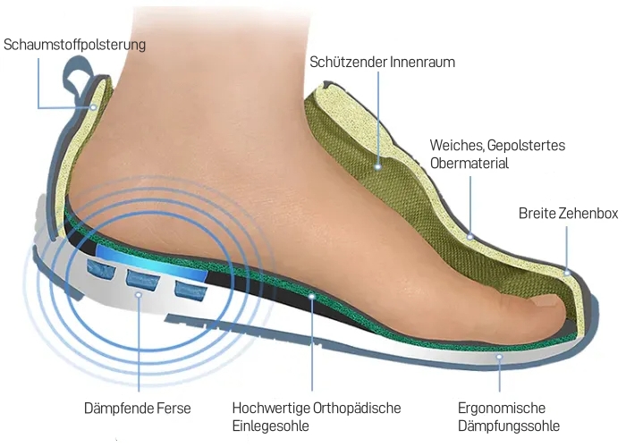 Die innovative Schmerzlinderungstechnologie bietet stilvolle Orthesenschuhe und bequemste orthopädische Schuhe für Frauen.