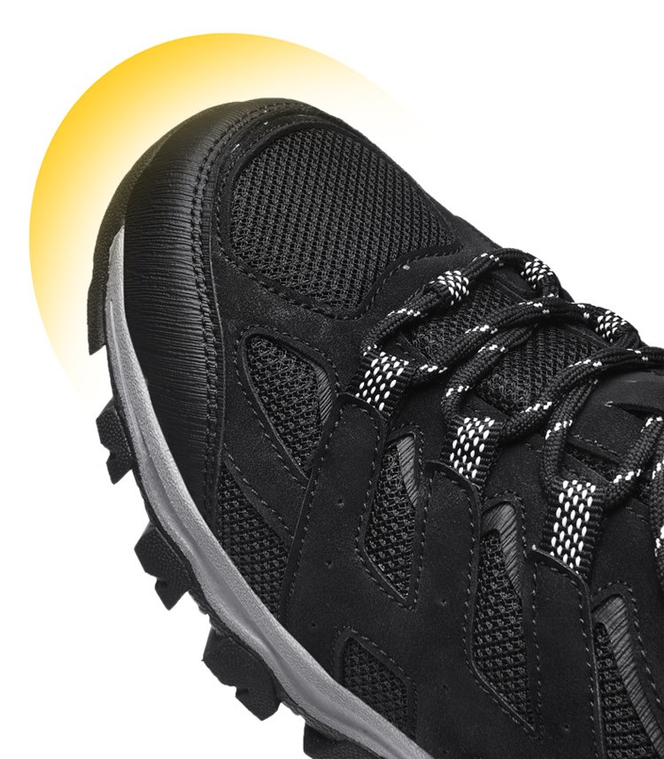 【Mehrschichtiger Zehenschutz】: Die Außensohle erstreckt sich bis zum Vorderfußbereich, wodurch potenzielle Schäden durch unbeabsichtigte Stöße effektiv reduziert und der Kollisionsschutz auf höchstem Niveau verbessert werden. Das geräumige Zehendesign ermöglicht es den Füßen, sich von beengten und unbequemen Umgebungen zu verabschieden.