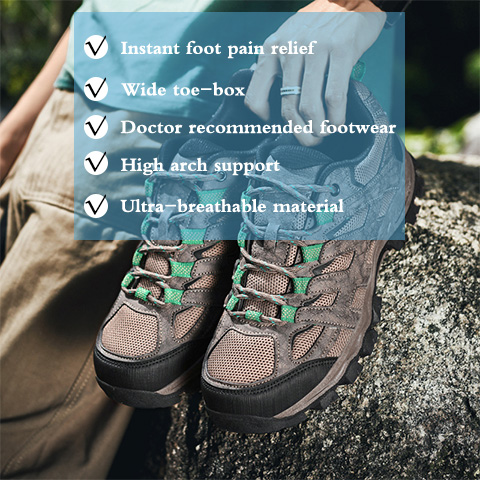 • Fußgewölbeunterstützung:  Sie ist so konzipiert, dass sie Ihren Füßen größtmöglichen Komfort bietet, indem sie den Druck gleichmäßig auf Ihre Fußballen, Zehen und Ferse verteilt und so die Ermüdung beim Stehen oder Gehen den ganzen Tag über verringert. Dadurch wird Ihr tägliches Gehen sicherlich angenehmer.