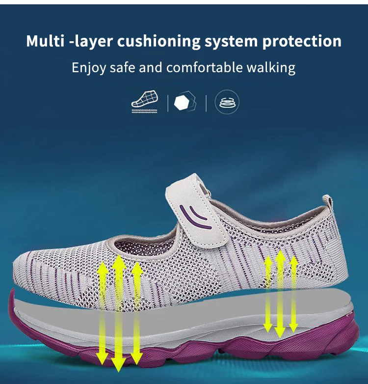 - Fußgewölbepolsterung: Mit einer bis zu 3 cm dicken Sohle versprechen die Schuhe eine weiche und leichte Dämpfung bei jedem Schritt, indem sie die Belastung gleichmäßig auf Fußballen, Zehen und Ferse verteilen und so Ermüdungserscheinungen beim Tragen vorbeugen Tag lang.