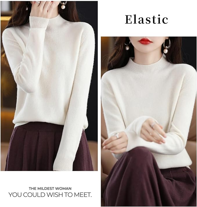 ⭐Merkmal: Kaschmirpullover für Damen, Wollpullover für Damen, lange Ärmel, leicht, klassische Volltonfarbe, elegantes französisches Halbrollkragendesign, verleiht Ihnen ein stilvolles und elegantes Erscheinungsbild.