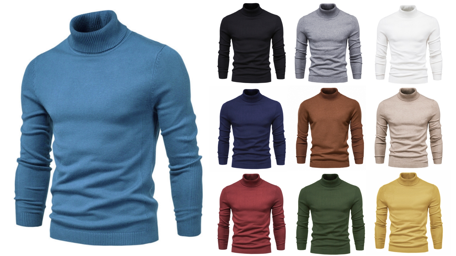 Rollkragenpullover für Herren mit mittellangem Kragen und Rundhalsausschnitt, Basic-Pullover aus Kaschmir