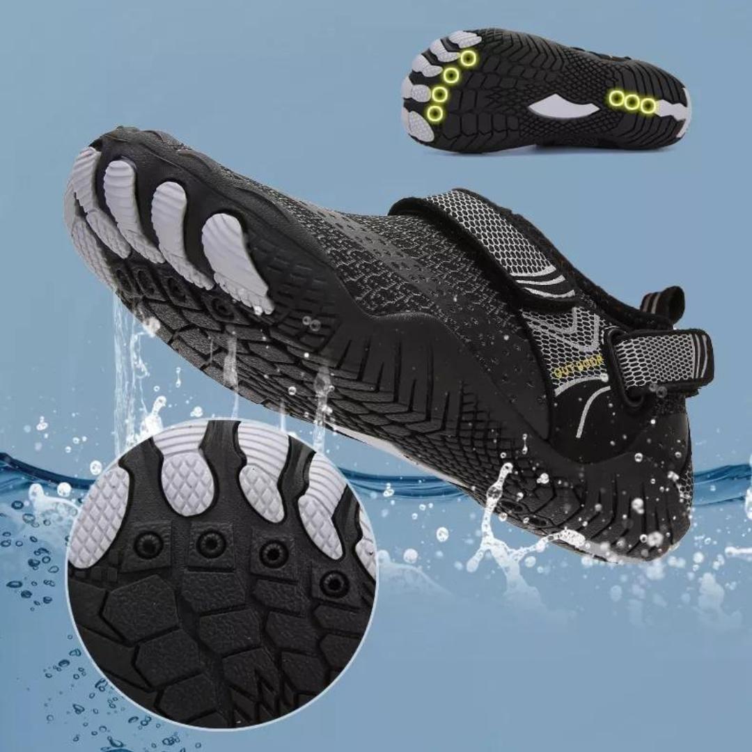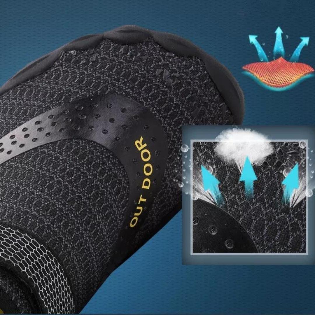 Von der atmungsaktiven Synthetikfaser bis zur abriebfesten und wasserdichten Gummisohle - Ihre Füße und Zehen sind sicher und trocken, während Sie unvergleichlichen Komfort und Freiheit genießen.